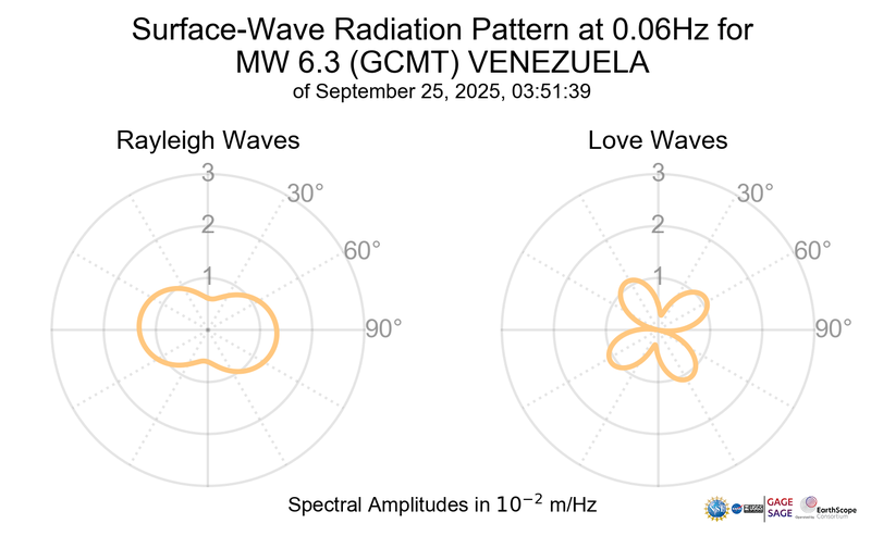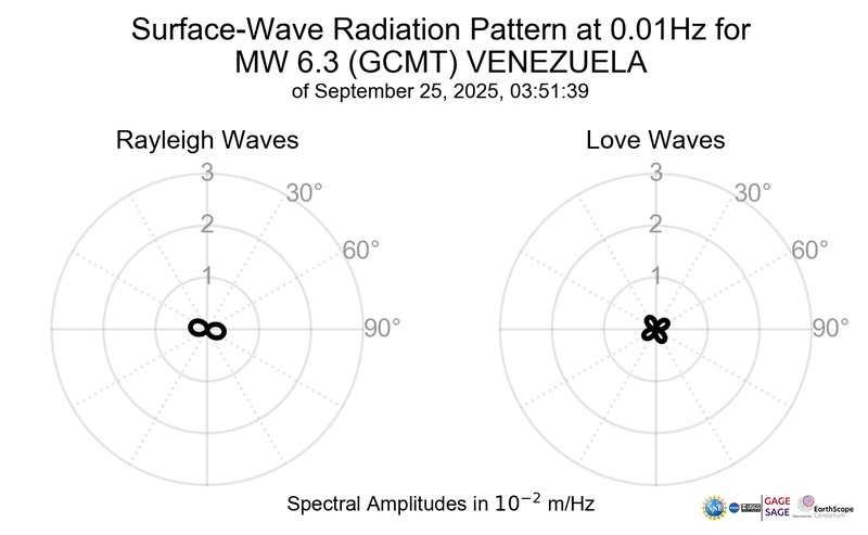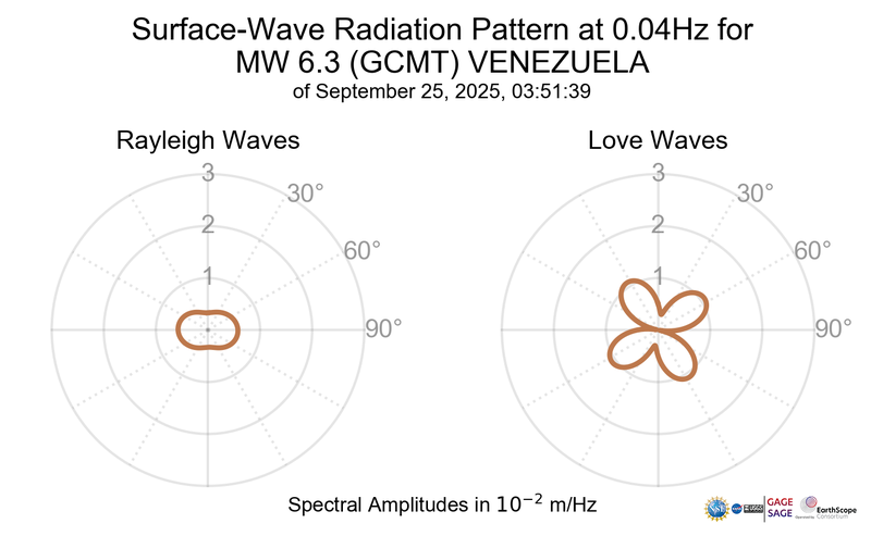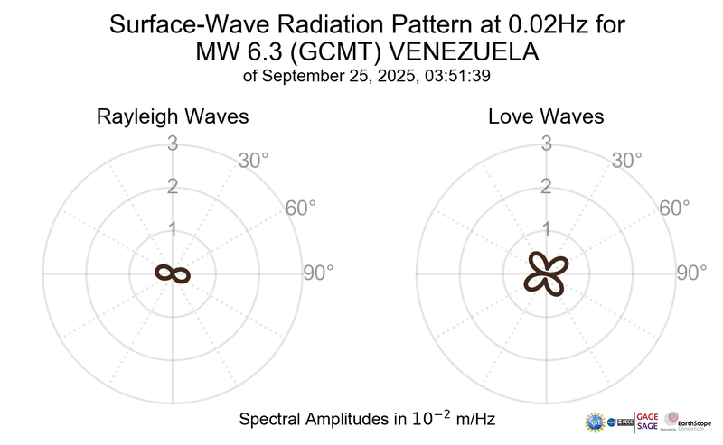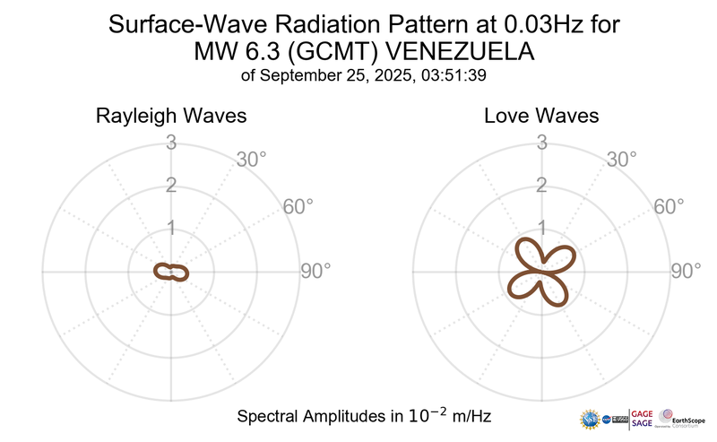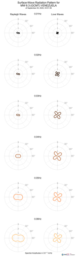 Surface-Wave Radiation Patterns for MW 6.3 VENEZUELA |