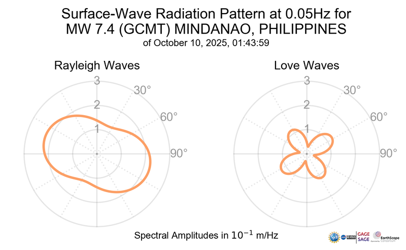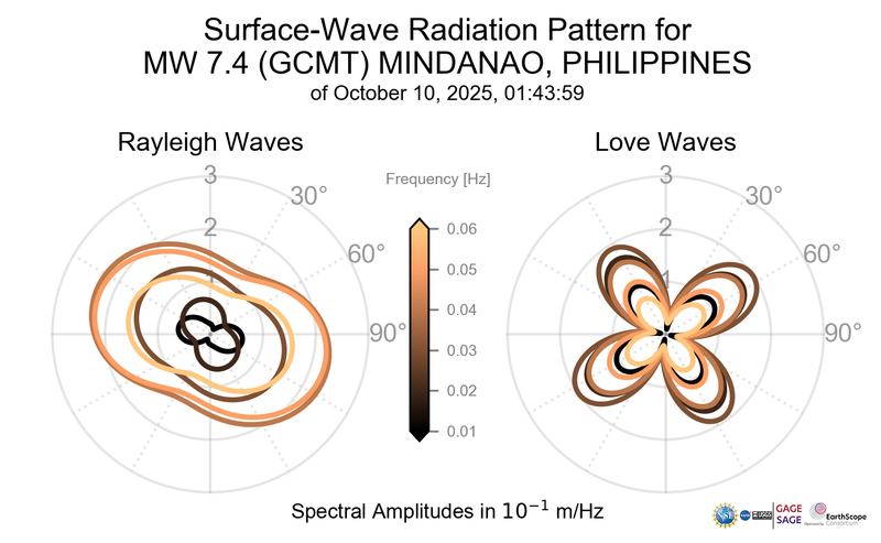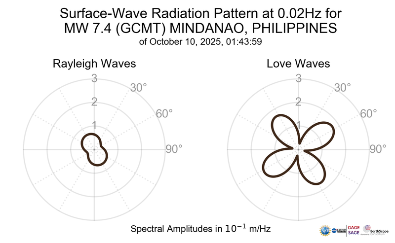 Surface-Wave Radiation Patterns for MW 7.4 MINDANAO, PHILIPPINES |
