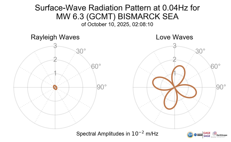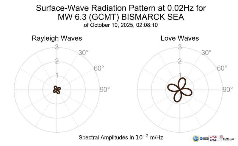 Surface-Wave Radiation Patterns for MW 6.3 BISMARCK SEA |