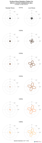 This page shows the surface-wave radiation patterns for the selected event.