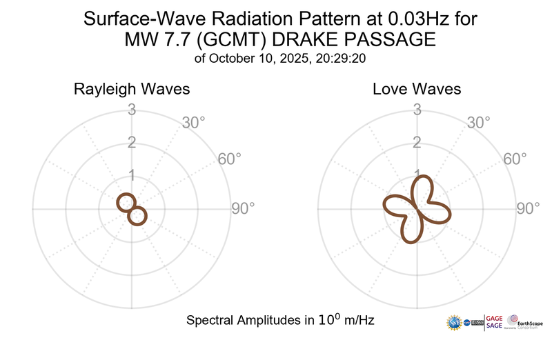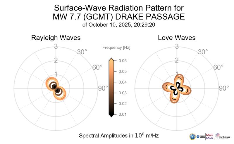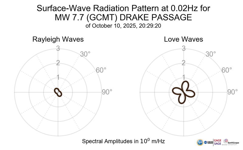 Surface-Wave Radiation Patterns for MW 7.7 DRAKE PASSAGE |