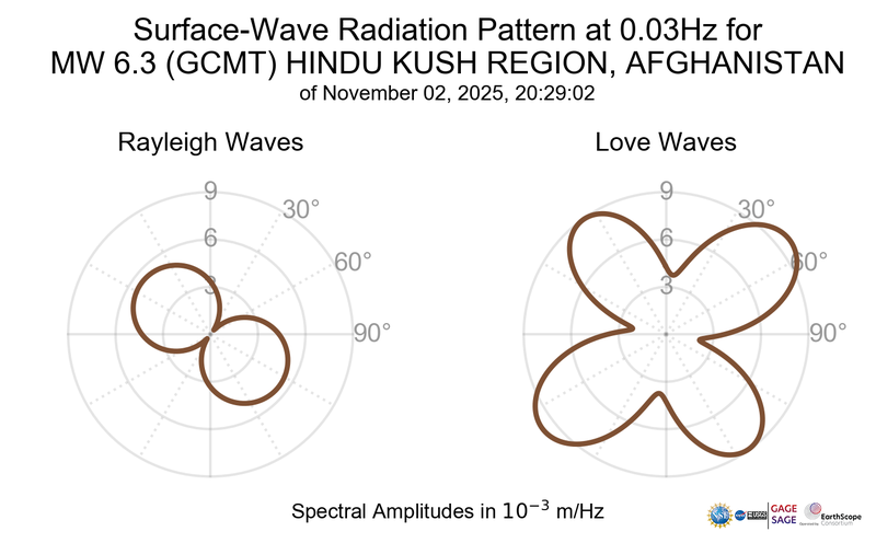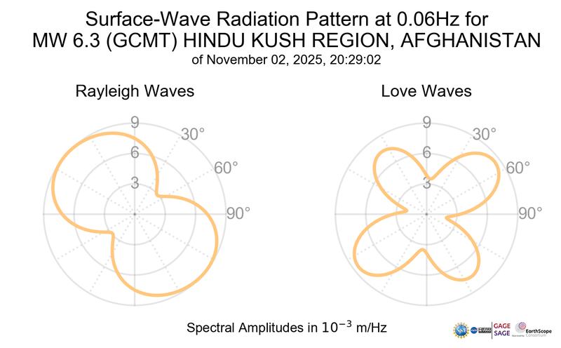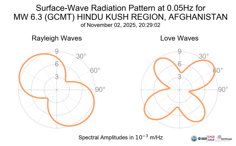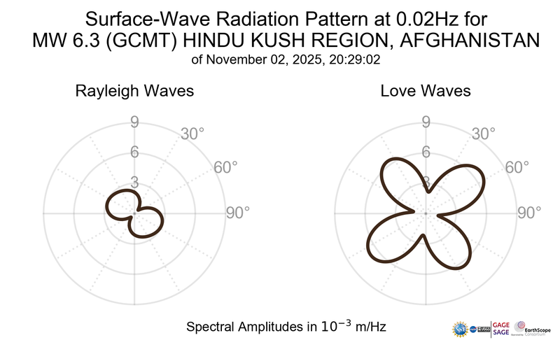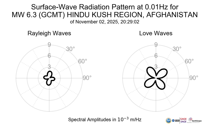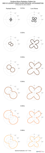 Surface-Wave Radiation Patterns for MW 6.3 HINDU KUSH REGION, AFGHANISTAN |