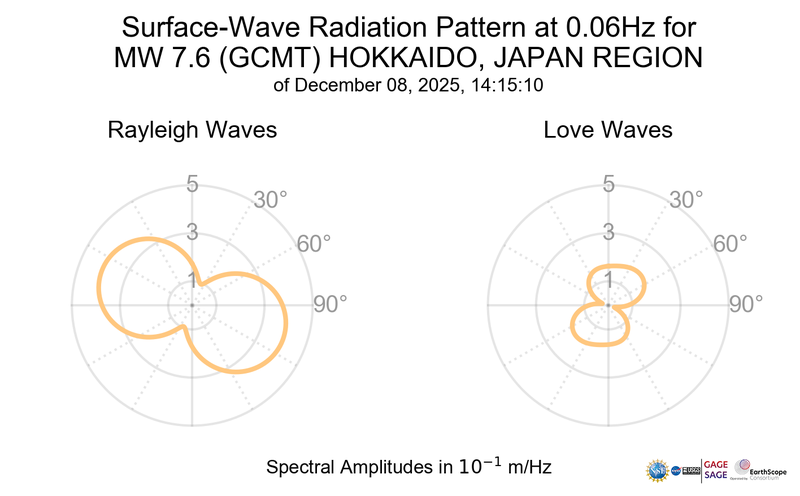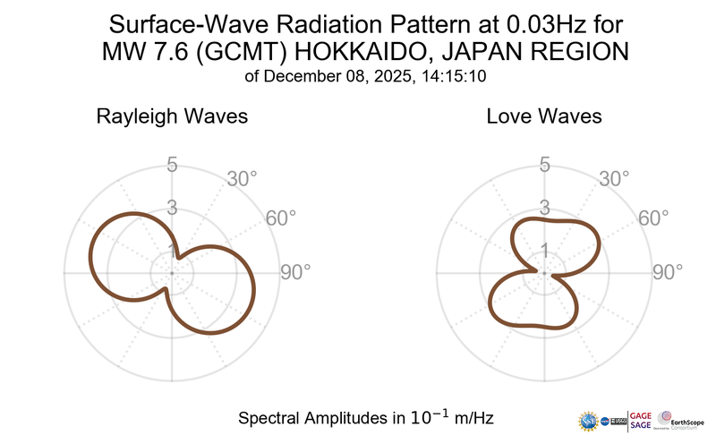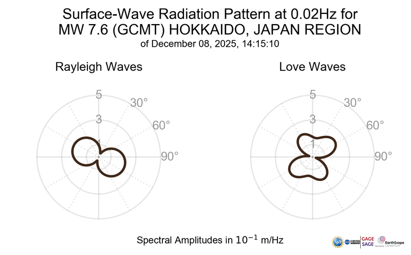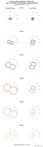 Surface-Wave Radiation Patterns for MW 7.6 HOKKAIDO, JAPAN REGION |