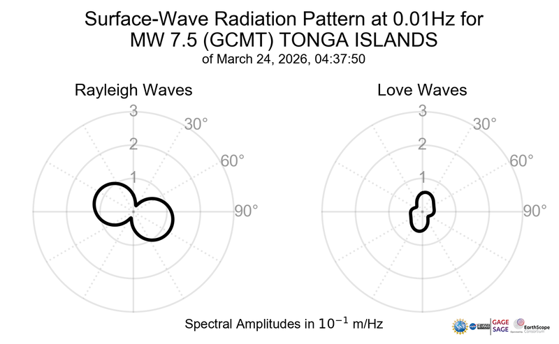 Surface-Wave Radiation Patterns for MW 7.5 TONGA ISLANDS |